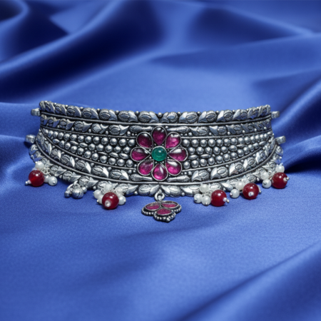 Ruby Stone Oxidised Choker Necklace