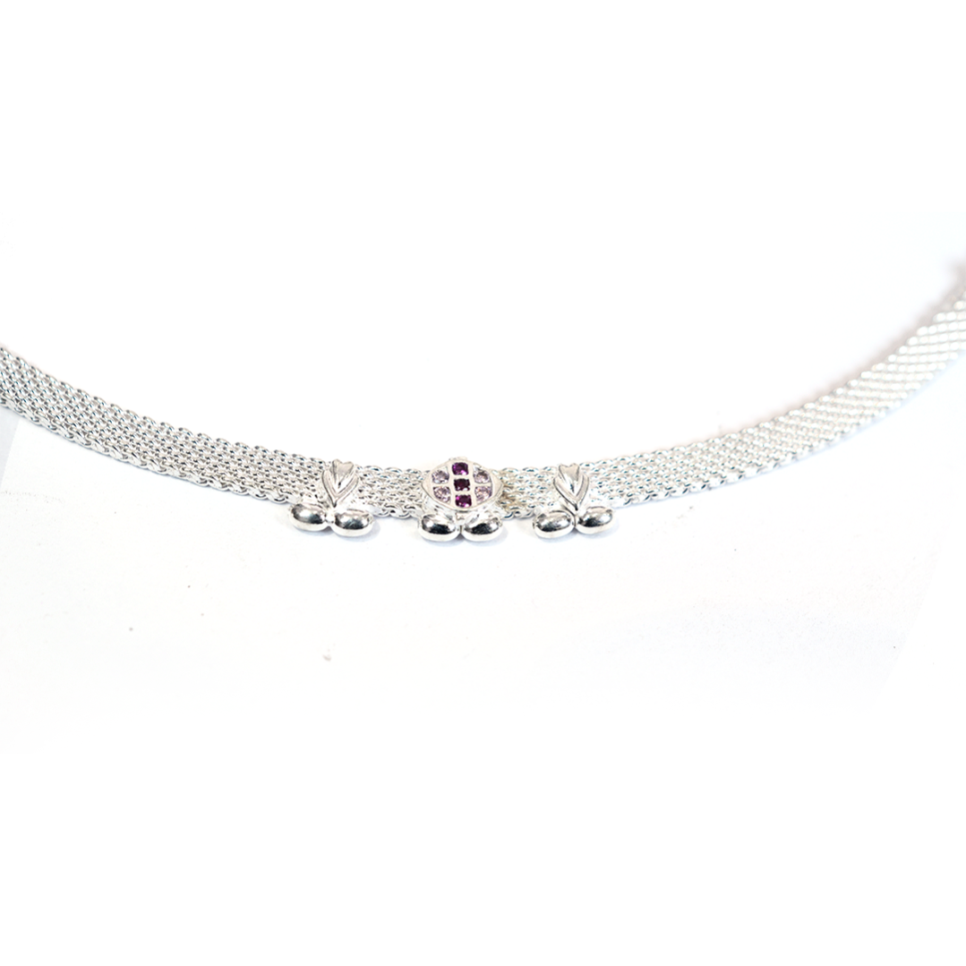 Experience the beauty of fine craftsmanship with the Elegance Stream Anklet, a stunning blend of tradition and modern artistry. This handcrafted payal features a premium silver mesh band paired with elegant multi-layer chains that create a cascading movement with every step.